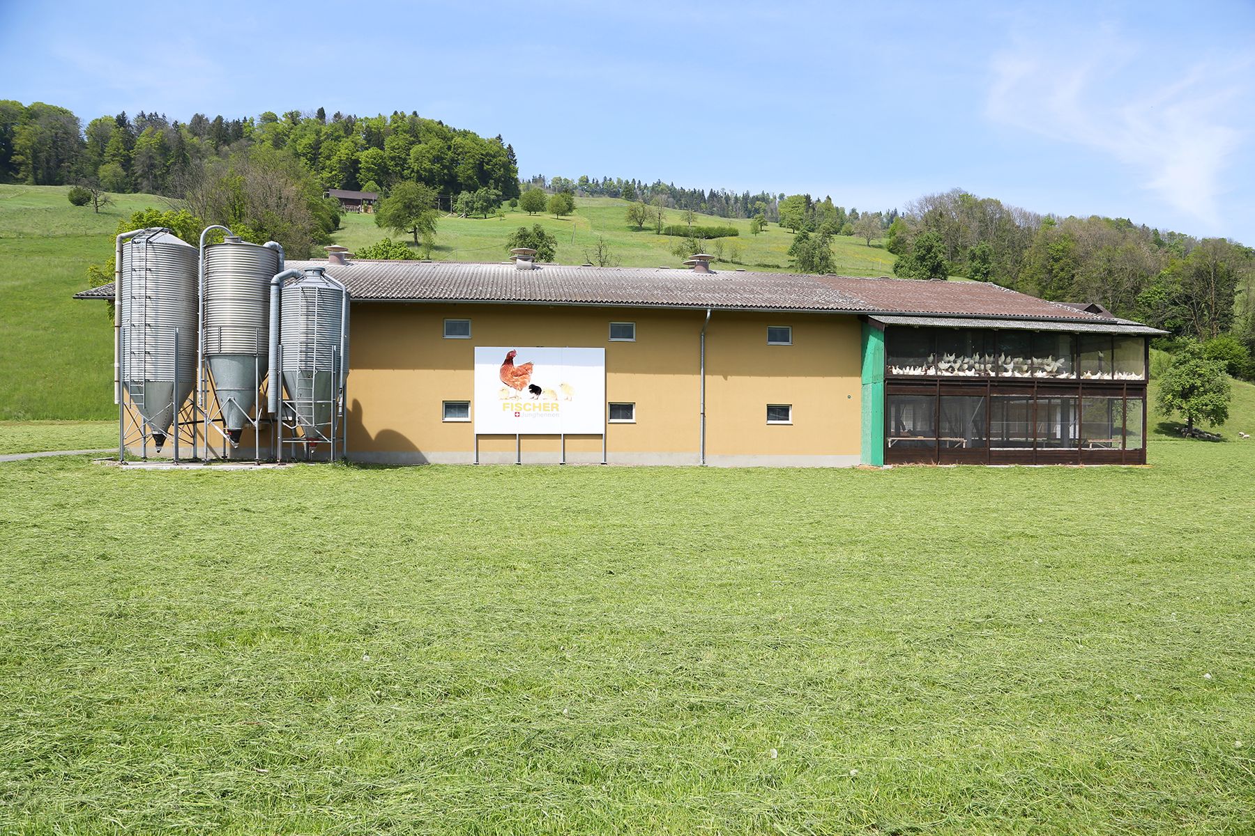 Unser Aufzuchtbetrieb liegt zwischen Malters und Schachen, direkt neben der kleinen Emme. Er umfasst rund 20'000 eigene Aufzuchtplätze sowie externe Betriebe die nach konventioneler und Bio Suisse Richtlinien aufziehen. Alle Ställe sind mit Volieren und Wintergarten nach BTS und CNF-Normen ausgestattet. Der grosse Wärmebedarf der Küken, wird durch eine betriebseigene Holzschnizelfeuerung gedeckt. Weiter deckt eine Photovoltaikanlage auf den Stalldächern den gesamten anfallenden Strombedarf ab. So erreichen wir eine ausgezeichnete Ökobilanz.